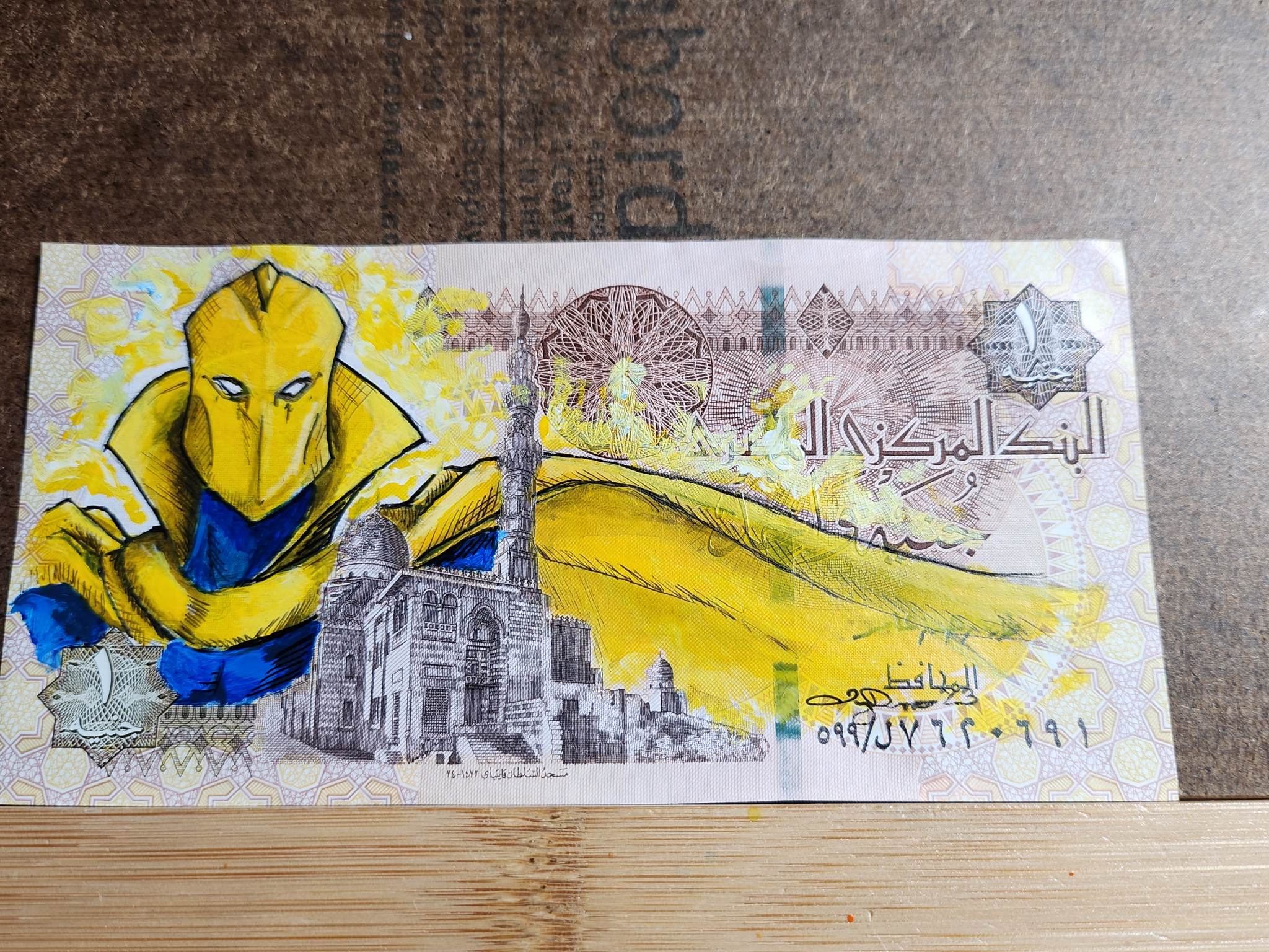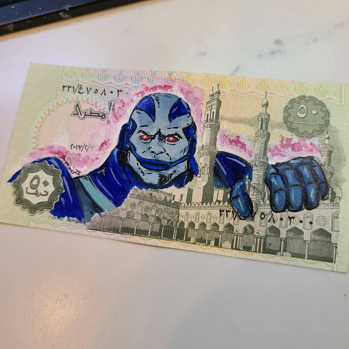 These paintings are done on genuine Egyptian Bank Notes. These character are either from Egypt, their power originates from Egypt, or they ruled over Egypt at some time.