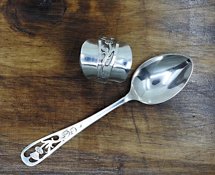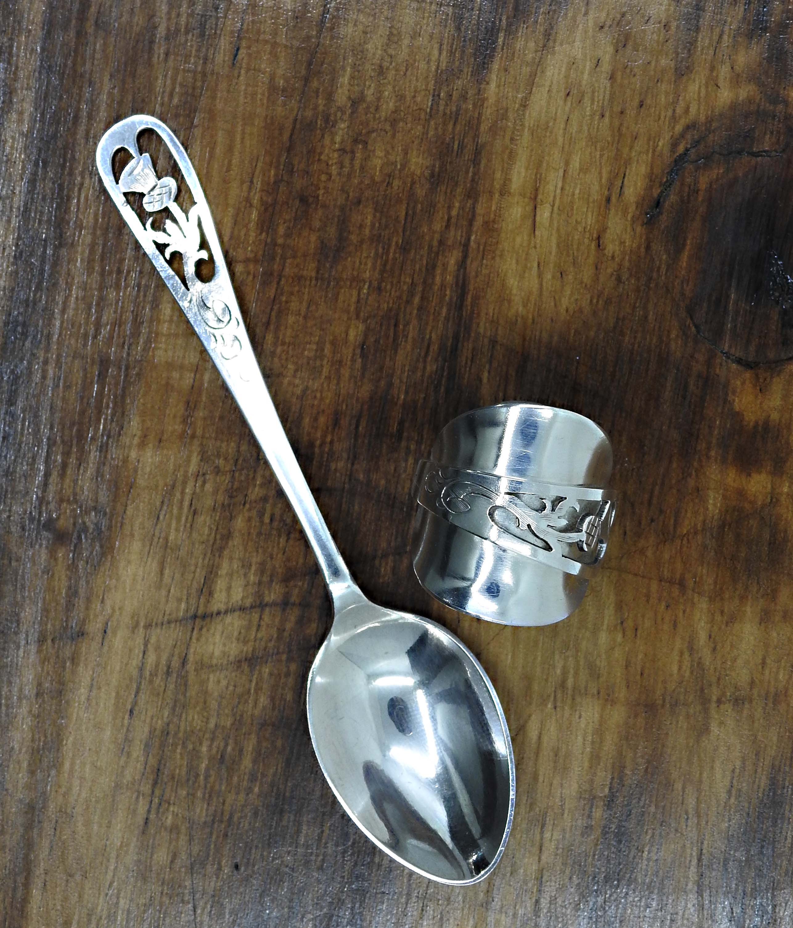 A vintage silver-plated spoon by Jas Ramsay of Dundee, c.1900–1930s, transformed into a unique Scottish thistle ring full of history and charm.