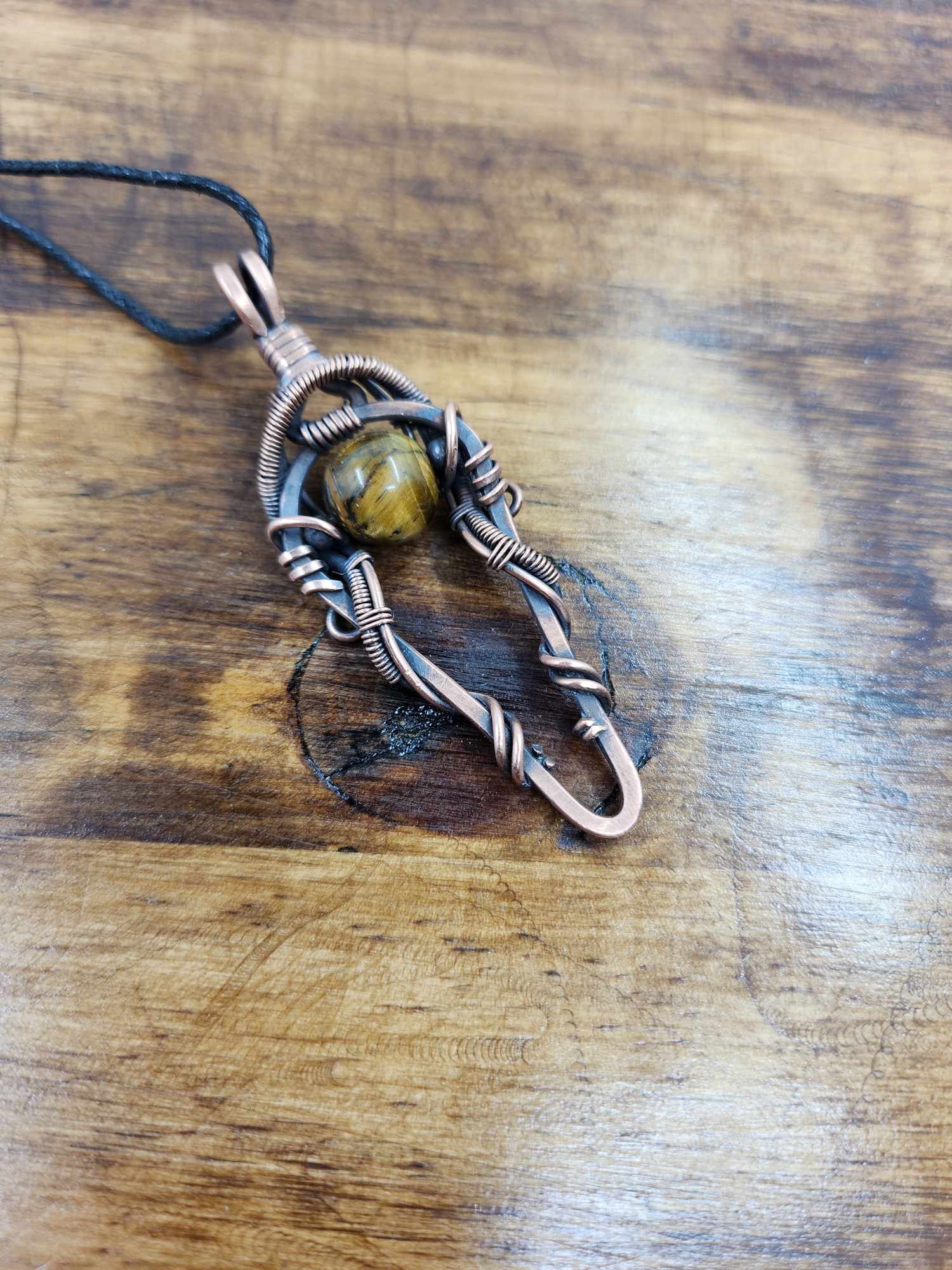 Handmade Copper Wire Wrapped Tiger’s Eye Pendant Necklace – Rustic Unisex Jewelry