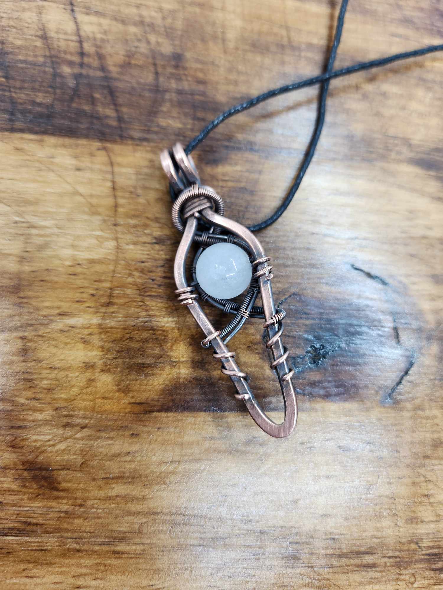 This elegant pendant is great for him/her/they and measures 2.5 inches long. Please note if you would like it on a copper chain, satin cord or black cotton cord. Length choices are 18 inches, 20 inches and 22 inches.